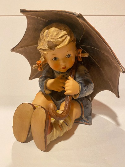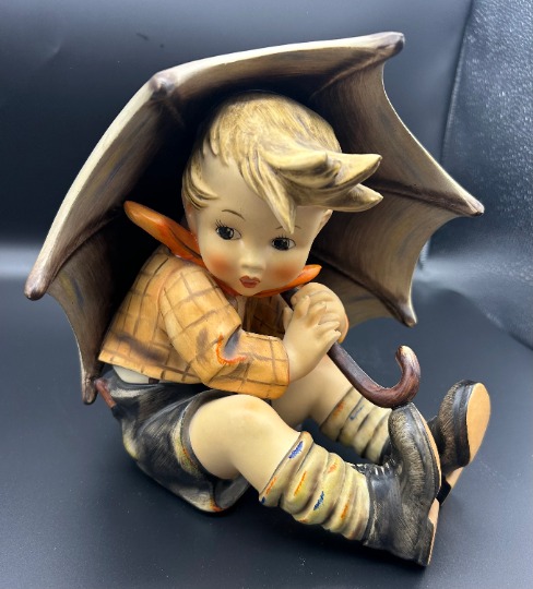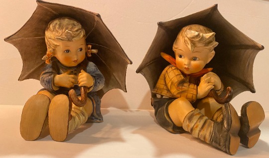 This is a rare item from the Goebel Hummel Collection made during the 1950s. A one-of-a-kind find as it is largely unavailable worldwide this item is sure to make a thoughtful gift for someone or add charm to a collector's collection. The model of this item is for the Umbrella Girl& Boy. The figurines are 8 inches tall.