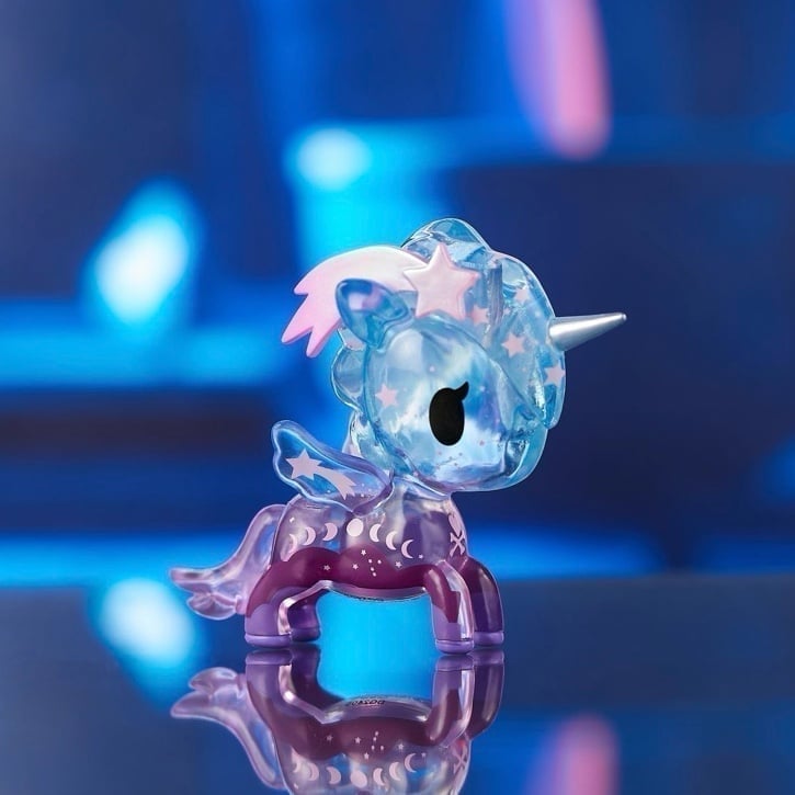 tokidoki Mystic Andromeda Unicorno is a magical essential! Crafted w/love & Simone Legno's creativity, this vinyl unicorno ft. the chaser Mystic Andromeda w/glitter; in vibrant & transparent colors including pink, purple, & baby blue! Carefully preserved figure sealed w/in silver foil bag in Mystic Magic Unicorno Box; making it an enchanting & stellar addition to your deeply valued assemblage! Collectible art piece part of Mystic Magic Unicorno series! Representative of the Andromeda galaxy, this cosmical unicorno will tickle your fantastical fancy & leave your soul starstruck!