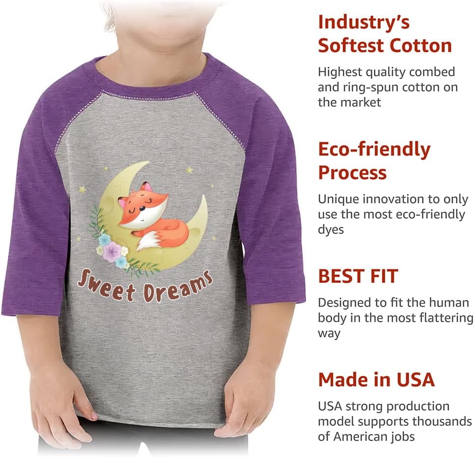 Sweet Dreams Toddler Baseball T-Shirt is made of high-quality cotton that gives your kids a greater range of motion, allowing the t-shirt to keep its shape and stay super comfy! You will not regret the purchase, because your child will be happy to wear such a trendy and at the same time perfect for everyday use cloth. Buy Fox Animal 3/4 Sleeve T-Shirt today!
