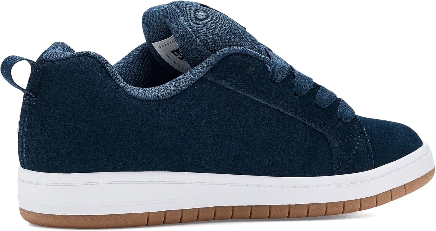 Suede upper materials. Lightweight mesh tongue. Foam padded tongue and collar for comfort and support. Vent holes for breathability. DCs trademarked Pill Pattern tread. Cupsole construction.