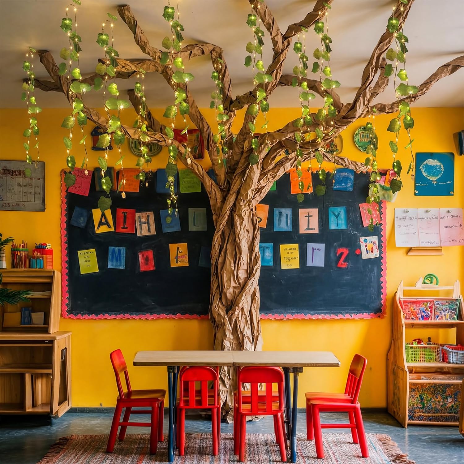 Features: Green Aesthetics: Create a stunning green bulletin board decor that stands out. Our bulletin board is ideal for creating a vibrant and engaging bulletin board, and also suitable for seasonal projects and everyday decor Lightweight Install: This rainforest bulletin board kit features lightweight materials and adhesive dot fixation for tool-free installation—no nails, or complex assembly required. All components are reusable and easy to disassemble Specifications: Material: paper, plastic Color: dark brown, green, warm white Size: as shown in the figure Package includes: 1 x Tree bulletin board kit Notes: Manual measurement, please allow slight errors on size. The color may exist a slight difference due to different screen displays