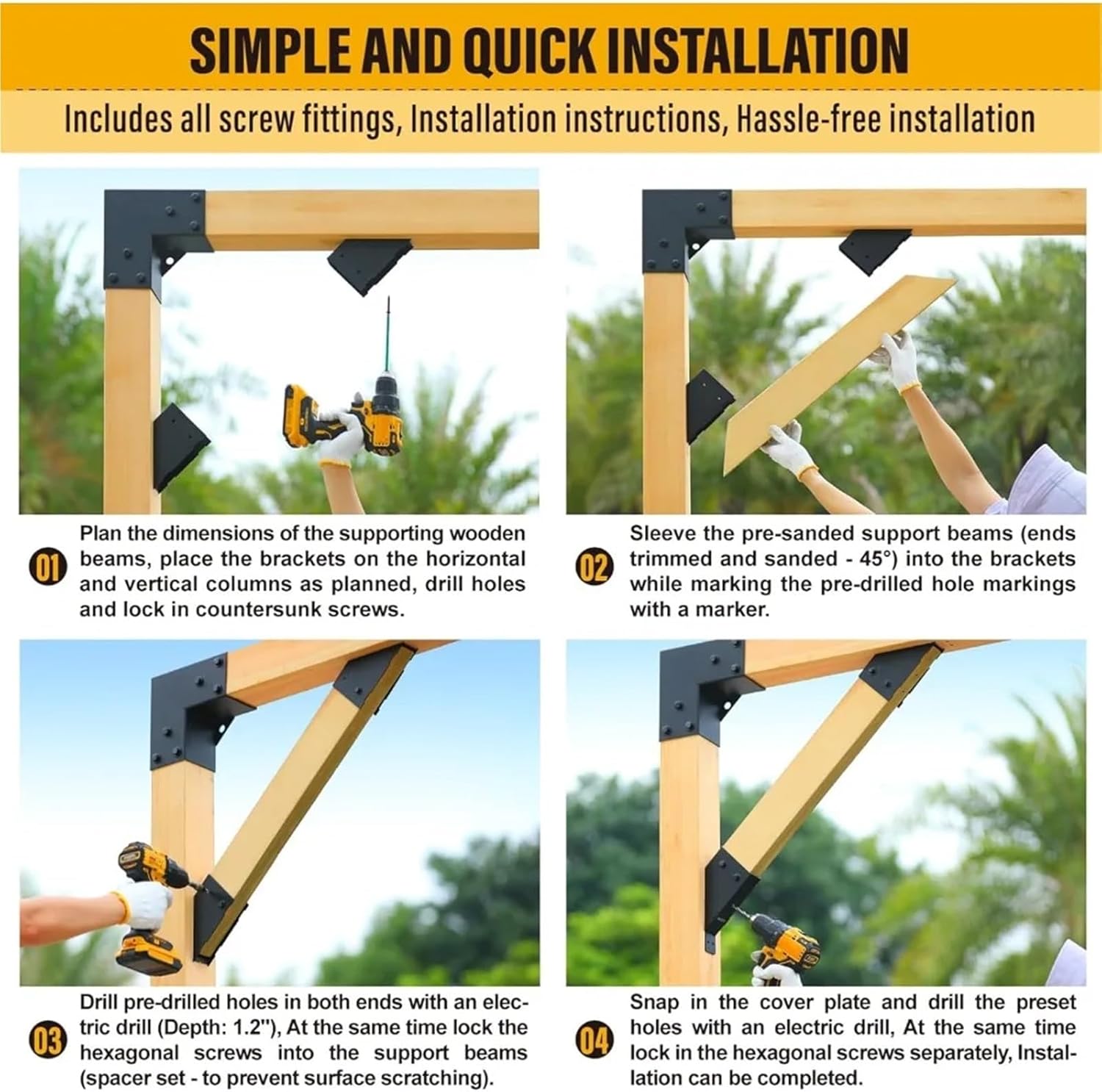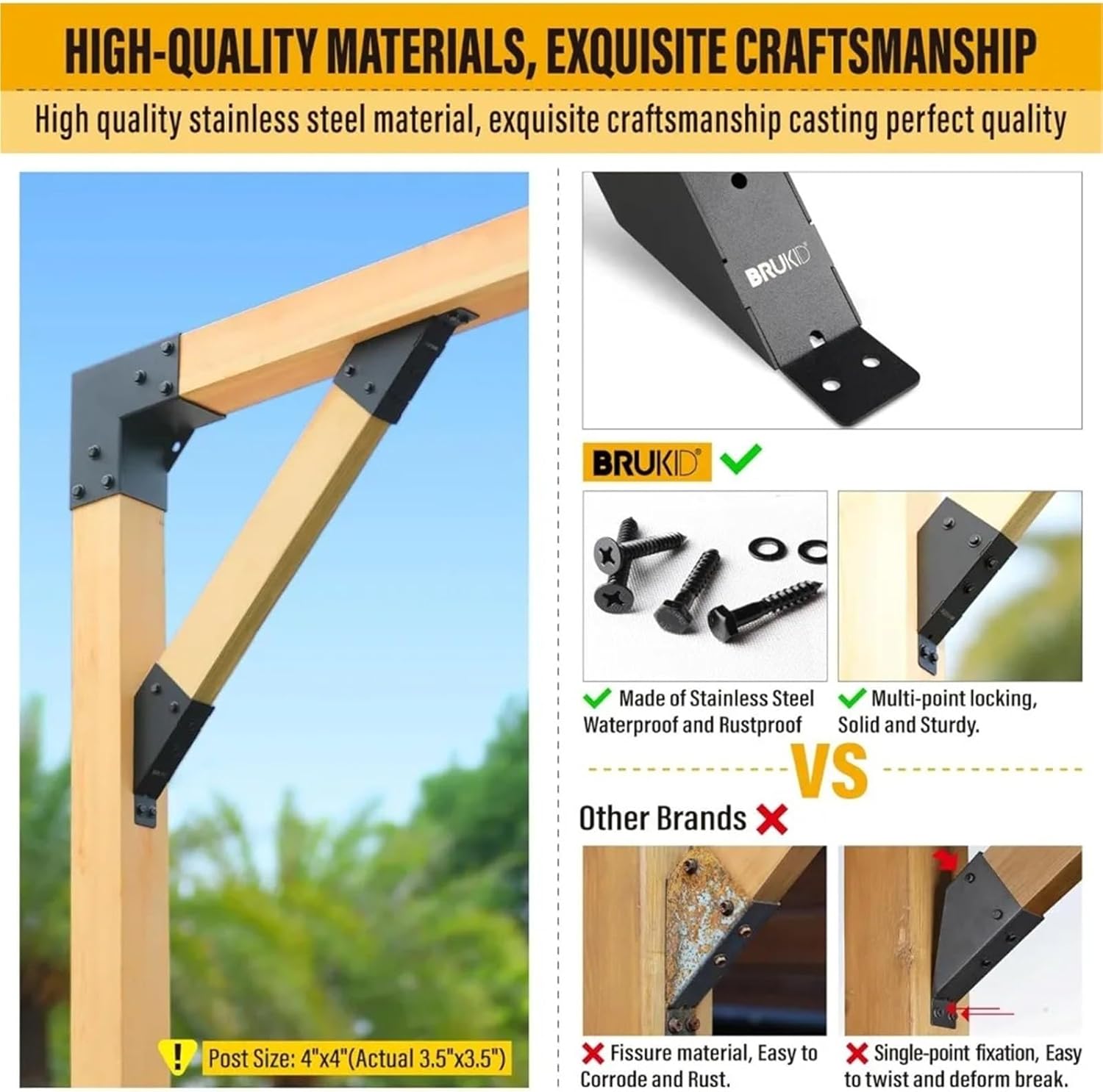 Furniture Parts & Hardware- 8pc 45°-Degree Angle Support Bracket, 2x4 (Actual 1.5''x3.5'') Angle Bracket, Suitable for Pergolas, Gazebo,