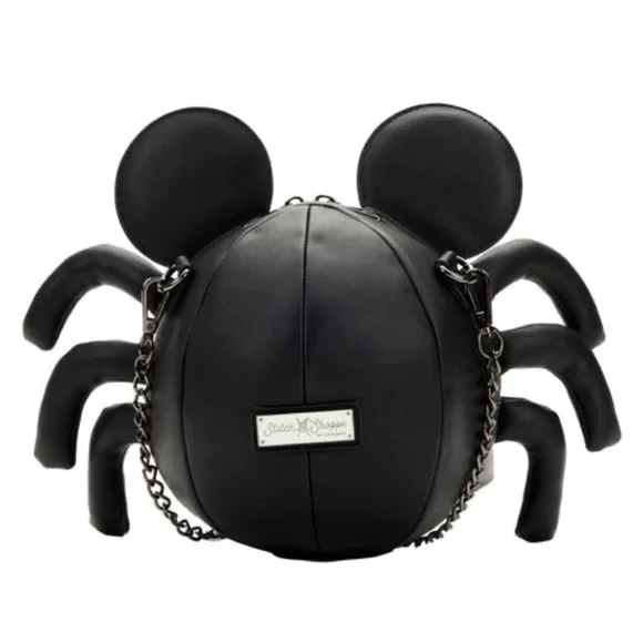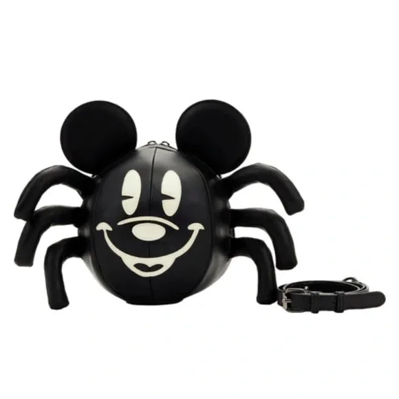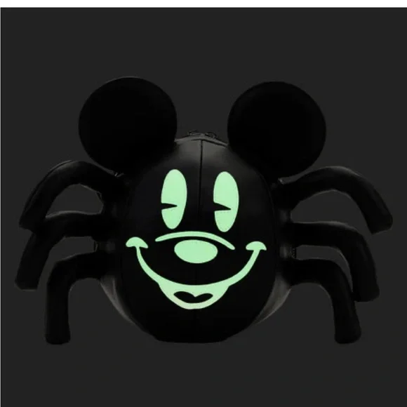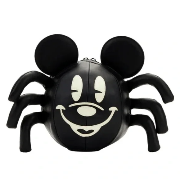 Disney Stitch Shop SpiderBRAND NEW STILL IN WRAPPING RETAILS : $110Your wardrobe is in for a scare with this Stitch Shoppe Mickey Mouse Spider Crossbody Bag. The Stitch Shoppe Disney Mickey Mouse Spider Crossbody is a dome, 3D figural design with moving legs! It features an adjustable shoulder strap that you can detach to swap with other straps. It may spook you just how much you’ll be able to fit in this spacious purse.The Stitch Shoppe Mickey Mouse Spider Crossbody Bag is made of vegan leather (polyurethane). Bag has sturdy metal hardware, an adjustable chain shoulder strap (detachable), three dimensional half dome ears, and features: applique, movable legs, and printed details. Take note of the coordinating design of the inside lining fabric. Face GLOWS in the DARKThis bag is an officially licensed Disney product.Bag Dimensions: 9”W x 9”H x 5”D (Please note: width is measured across the bottom of the bag.)Come with a Pin